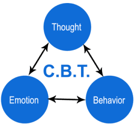 Cognitive behavioural therapy (CBT) is a pragmatic, highly structured, solution-focused therapy. It tends to focus on current difficulties rather than explore the historical origins of them. It also relies on a collaborative therapeutic relationship between therapist and client to deal with the presenting problems. CBT is underpinned by the beliefs/assumptions that the way a person thinks affects the way he/she feels and behaves . The goal of CBT is therefore to facilitate change in clients' thought patterns and in turn change their responses (feels and behaviours) to difficult situations.